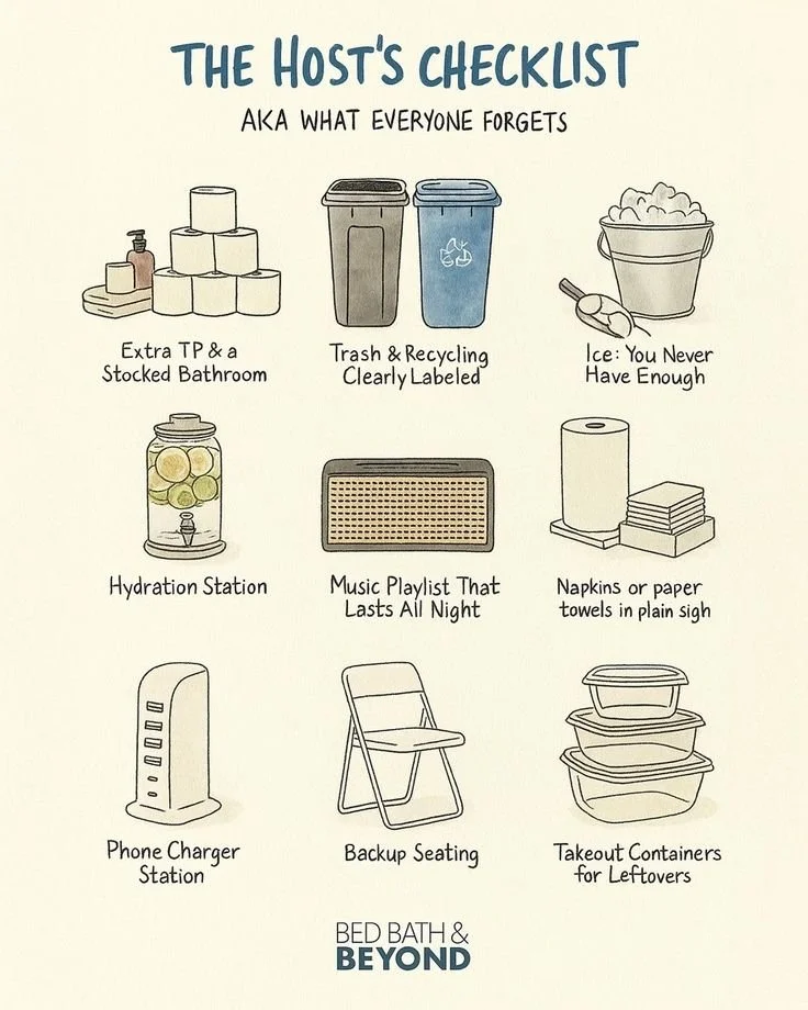 • As the host, keep an eye on conversation, drawing everyone in and making space for both lively talk and quieter guests.